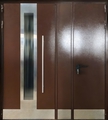 Двустворчатая подъездная дверь со стеклом и отбойником