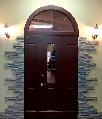 Дверь в квартиру с отделкой МДФ и верхней вставкой